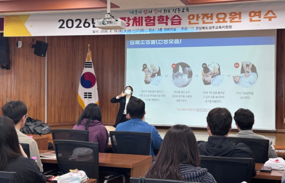 [고타야뉴스=이은희기자]성주교육지원청은 4월 18일 관내 초·중·고등학교 교사 30명을 대상으로 현장체험학습 운영의 안전 역량을 강화하기 위해 `2026년 현장체험학습 안전요원 연수`를 실시했다.