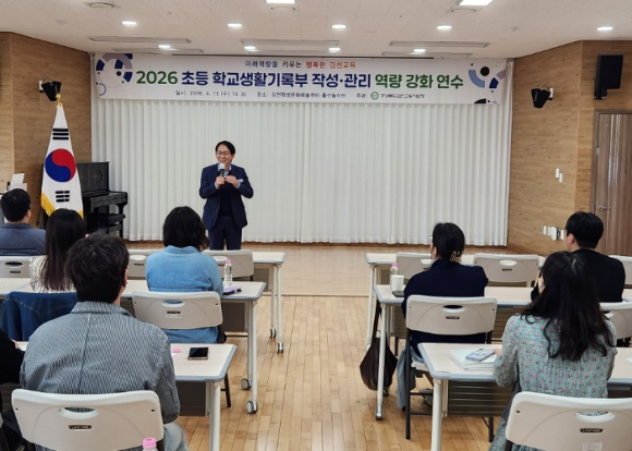 [고타야뉴스=이은희기자]경상북도김천교육지원청은 2026년 4월 15일(수) 김천학생문화예술센터에서 관내 초등학교 학교생활기록부 업무담당자 및 희망 교사 30명을 대상으로 `2026 초등 학교생활기록부 작성・관리 역량 강화 연수`를 실시했다.