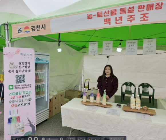 김천시는 직거래장터 기간 동안 홍보·판매부스를 운영하여 지역 농특산품을 선보이고, 방문객을 대상으로 적극적인 홍보 및 판매 활동을 펼쳤다. 특히, 이번 직거래장터에서는 관내 업체 ‘백년주조’가 참여하여 벼리스파클링막걸리, 벼리막걸리, 김천호두막걸리 등 김천을 대표하는 전통주를 전시·판매하고, 시식 행사를 병행하여 제품의 우수성을 직접 체험할 수 있는 기회를 제공했다.