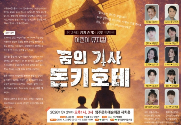 [고타야뉴스=이은희기자] 영주시는 오는 5월 2일 오후 1시와 오후 3시, 두 차례에 걸쳐 영주문화예술회관 까치홀에서 어린이 뮤지컬 ‘돈키호테’를 선보인다.