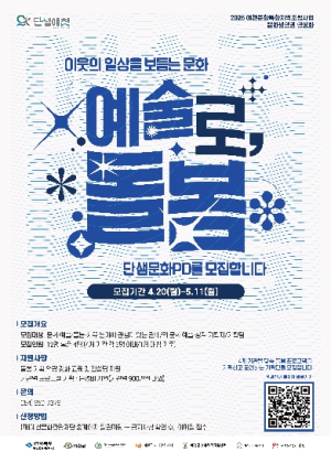 ‘단샘문화PD’는 지역 문화 프로그램을 직접 기획·운영하는 전문 인력으로, 이번 공모를 통해 `예술로, 돌봄` 사업의 핵심 기획자로 활동하게 된다.