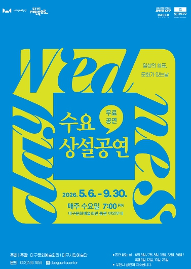 [고타야뉴스=이은희기자] 대구문화예술회관은 오는 5월 6일부터 9월 30일까지 매주 수요일 오후 7시, 대구문화예술회관 동편 야외무대에서 문화가 있는 날 ’수요상설공연‘을 선보인다.