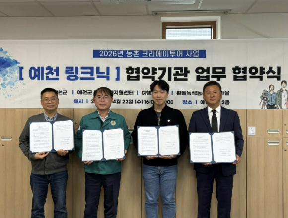 [고타야뉴스=이은희기자]예천군은 지난 22일 오후 4시, ‘농촌 크리에이투어’ 사업의 체계적인 추진과 민·관 협력 강화를 위한 민간 협의체를 구성하고 업무 협약을 체결했다고 밝혔다.