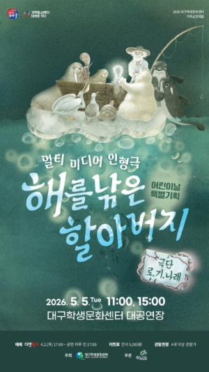 [고타야뉴스=이은희기자] 대구학생문화센터는 어린이날을 맞아 어린이와 가족 관객을 위한 특별 기획공연 `멀티미디어 인형극 해를 낚은 할아버지`를 오는 5월 5일 대공연장에서 선보인다.