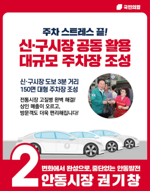 이와 동시에 대규모 생활인구 유입이 가능한 신시장과 구시장에는 공동주차장을 조성하여 이용객의 편의를 도모한다. 이미 중소벤처기업부 공모사업인‘전통시장 주차환경개선사업’을 선정으로 국비를 확보하였으며, 사업대상지 토지보상 등을 거쳐 신속히 추진할 예정이다. 조성될 공영주차장은 약 150면 규모의 지상주차장이며, 신·구시장을 도보로 2 ~ 3분 내 접근이 가능한 위치에 조성됨에 따라 안동을 대표하는 전통시장의 이용편의 개선이 기대된다.