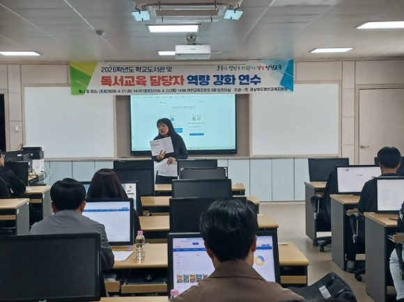 [고타야뉴스=박동수기자] 경상북도 영천교육지원청은 지난 4월 21일부터 23일까지 이틀간 관내 초·중·고등학교 독서 및 도서관 업무 담당자 40명을 대상으로 `학교도서관 시스템 활용 연수 및 독서 활동 활성화 방안` 연수를 성공적으로 개최했다.