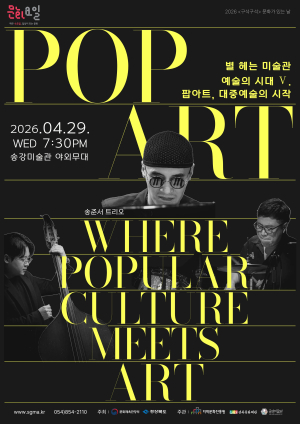 송강미술관은 오는 2026년 4월 29일(수) 오후 7시 30분, 미술관 야외공연장에서 융복합 예술 프로그램 「별 헤는 미술관 – 예술의 시대Ⅴ」의 다섯 번째 공연 ‘팝아트, 대중예술의 시작’을 개최한다.