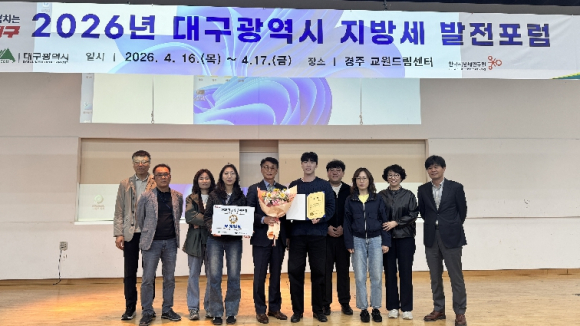 [고타야뉴스=이은희기자]대구 중구는 지난 16일부터 17일까지 경주 교원드림센터에서 열린 대구광역시와 한국지방세연구원이 공동 주관한 ‘2026년도 지방세 발전포럼’에서 우수상을 받았다.