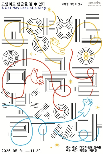 대구문화예술진흥원 대구미술관은 개관 15주년과 5월 가정의 달을 맞이하여, 온 가족이 예술로 소통하고 공감할 수 있는 교육형 어린이 전시와 특별 워크숍을 개최한다. 먼저 대구미술관은 오는 5월 1일부터 11월 29일까지 세상을 바라보는 새로운 시선을 제안하는 교육형 어린이 전시 ‘고양이도 임금을 볼 수 있다(A Cat May Look at a King)’를 선보인다.