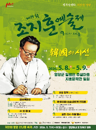 [보도자료]영양군은 우리나라를 대표하는 청록파 시인이자 《지조론》의 저자인 조지훈 선생의 문학정신을 기리고자 오는 5월 8일부터 9일까지 2일간 영양군 일월면 주실마을 일원에서 `제19회 조지훈 예술제`를 개최한다.