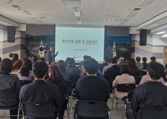 이번 교육은 특이민원 유형별 대응 전략, 사례 기반의 실무 대응 요령 등을 중심으로 국민권익위원회 소속 특이민원 시민상담관 박재병 강사가 참여해 실제 상담 사례를 중심으로 한 실전형 교육이 진행 됐다.