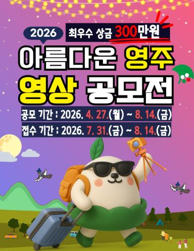 [고타야뉴스=이은희기자]경북 영주시는 영주를 소재로 한 참신한 홍보 콘텐츠를 발굴하고 시 홍보에 널리 활용하기 위해 `2026 아름다운 영주 영상 공모전`을 개최한다.