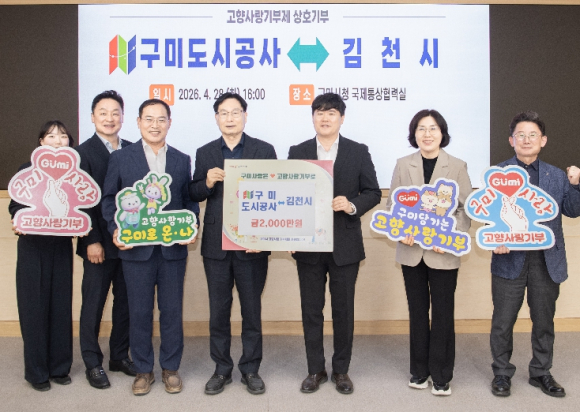 [고타야뉴스=이은희기자] 구미시는 4월 28일 구미도시공사와 김천시가 고향사랑기부제 활성화와 이웃 지역 간 상생 발전을 위해 고향사랑기부금 2,000만원을 상호기부했다고 밝혔다.