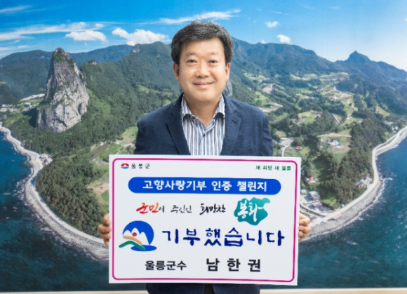 [고타야뉴스=이은희기자]남한권 울릉군수는 25일 건전한 기부문화 조성과 지역경제 활성화 및 상생발전을 위한 ‘고향사랑기부제 인증 챌린지 기부’릴레이에 동참했다.
