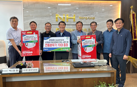 경북 안동 서안동농협(조합장 박영동)이 원로조합원 복지증진과 영농활동 편의를 위해 지난 14일 전동분무기 70대를 전달했다.