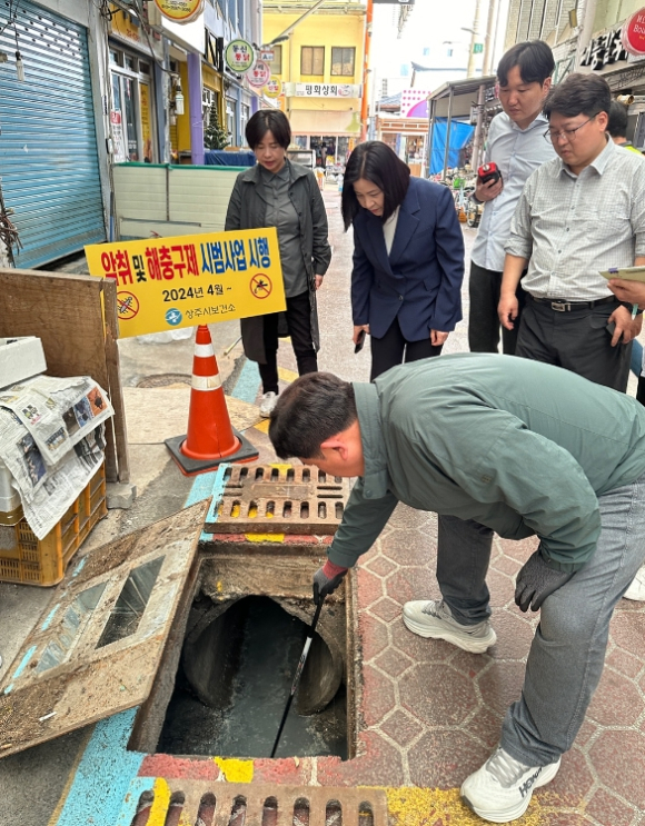 | ↑↑ 상주중앙시장 내 하수구 해충 및 악취제거 시범사업 |