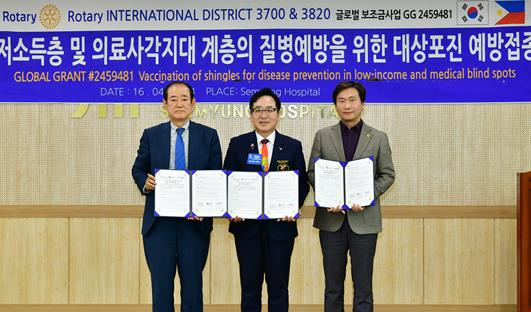 이날 협약으로 로타리클럽은 지역 내 저소득 취약계층 300명의 대상포진 예방접종 비용 5,400만원을 지원하기로 했다.