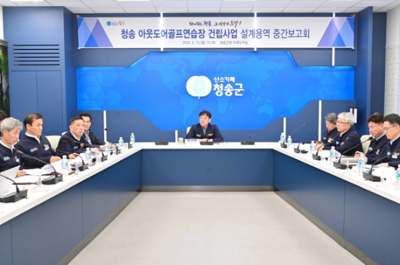[고타야뉴스=이은희기자]청송군은 15일 군청 미래도약실에서 `청송 아웃도어골프연습장 건립사업 설계용역 중간보고회`를 가졌다. 이번 보고회에는 군수, 부군수, 실·과장 및 사업관계자 등이 참석하여 청송 아웃도어골프연습장 건립을 위한 다양한 의견을 나눴다.